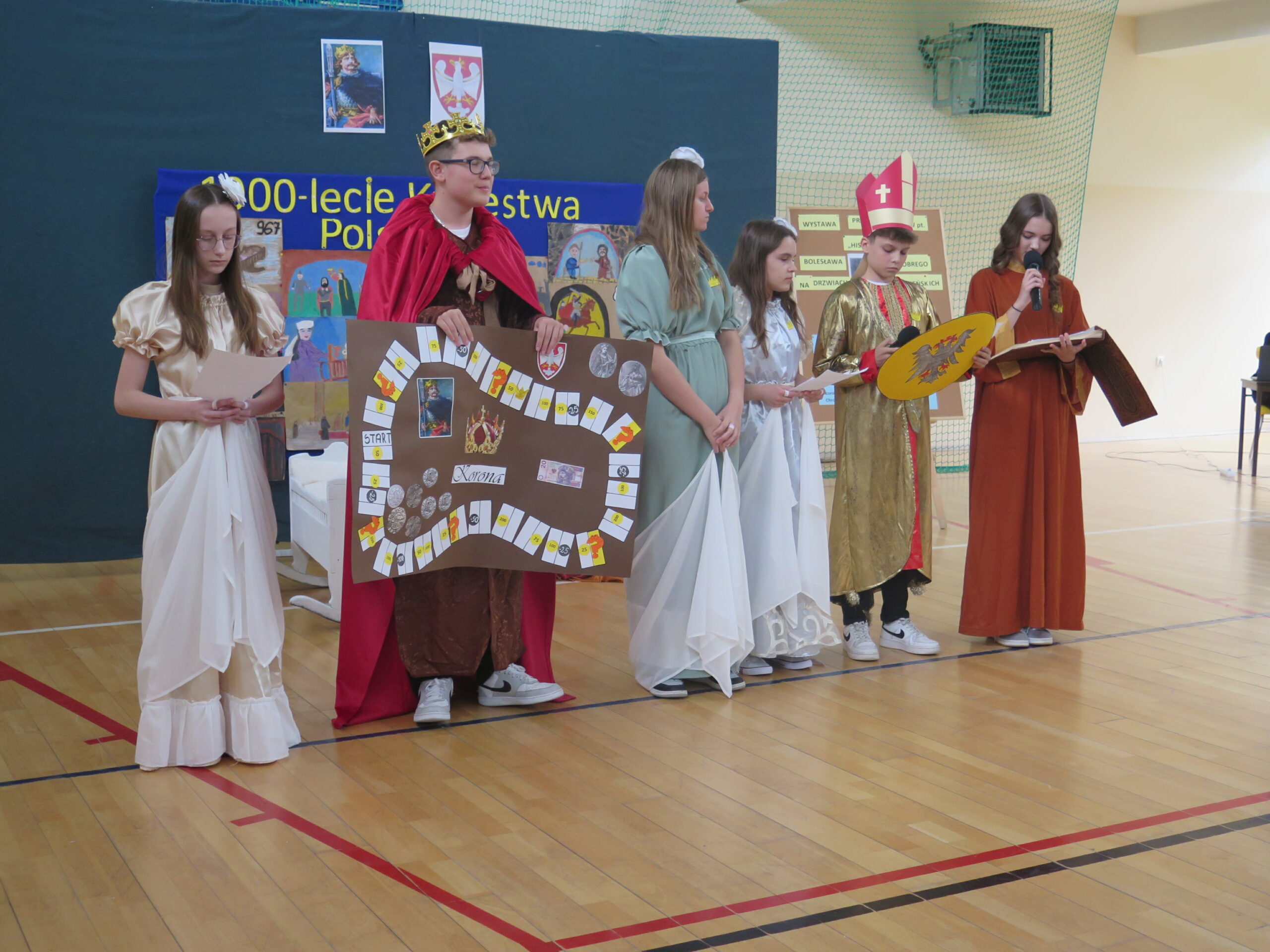 W naszej szkole koordynatorami przedsięwzięcia byli uczniowie klasy 7, którzy pod opieką nauczycielki historii z zaangażowaniem i pasją podjęli się organizacji działań związanych z jego realizacją. Przez kilka tygodni przygotowywali i przeprowadzali szereg inicjatyw edukacyjnych i artystycznych, które zaangażowały i przybliżały całej społeczności szkolnej postać Bolesława Chrobrego oraz znaczenie jego koronacji w 1025 roku.