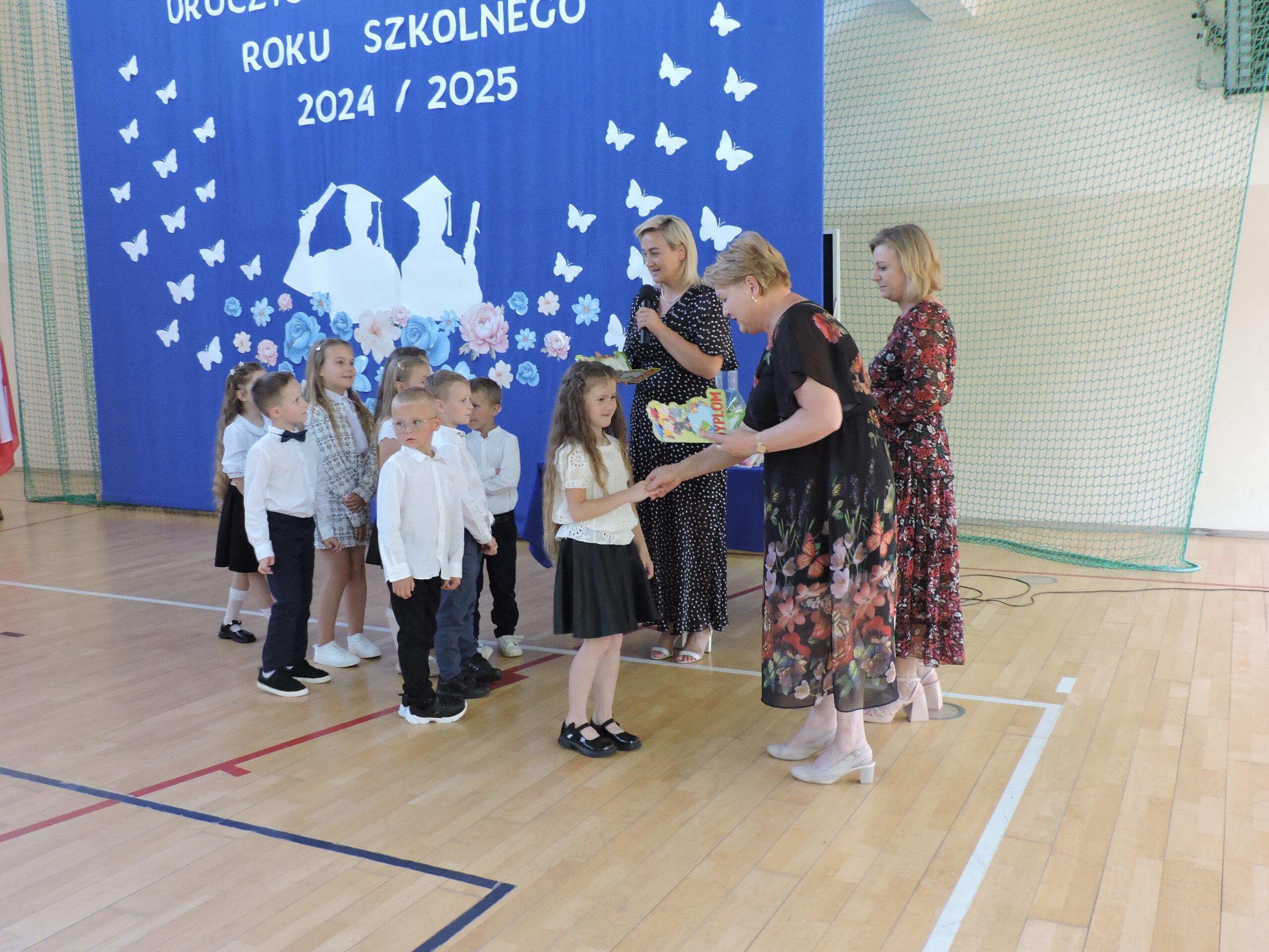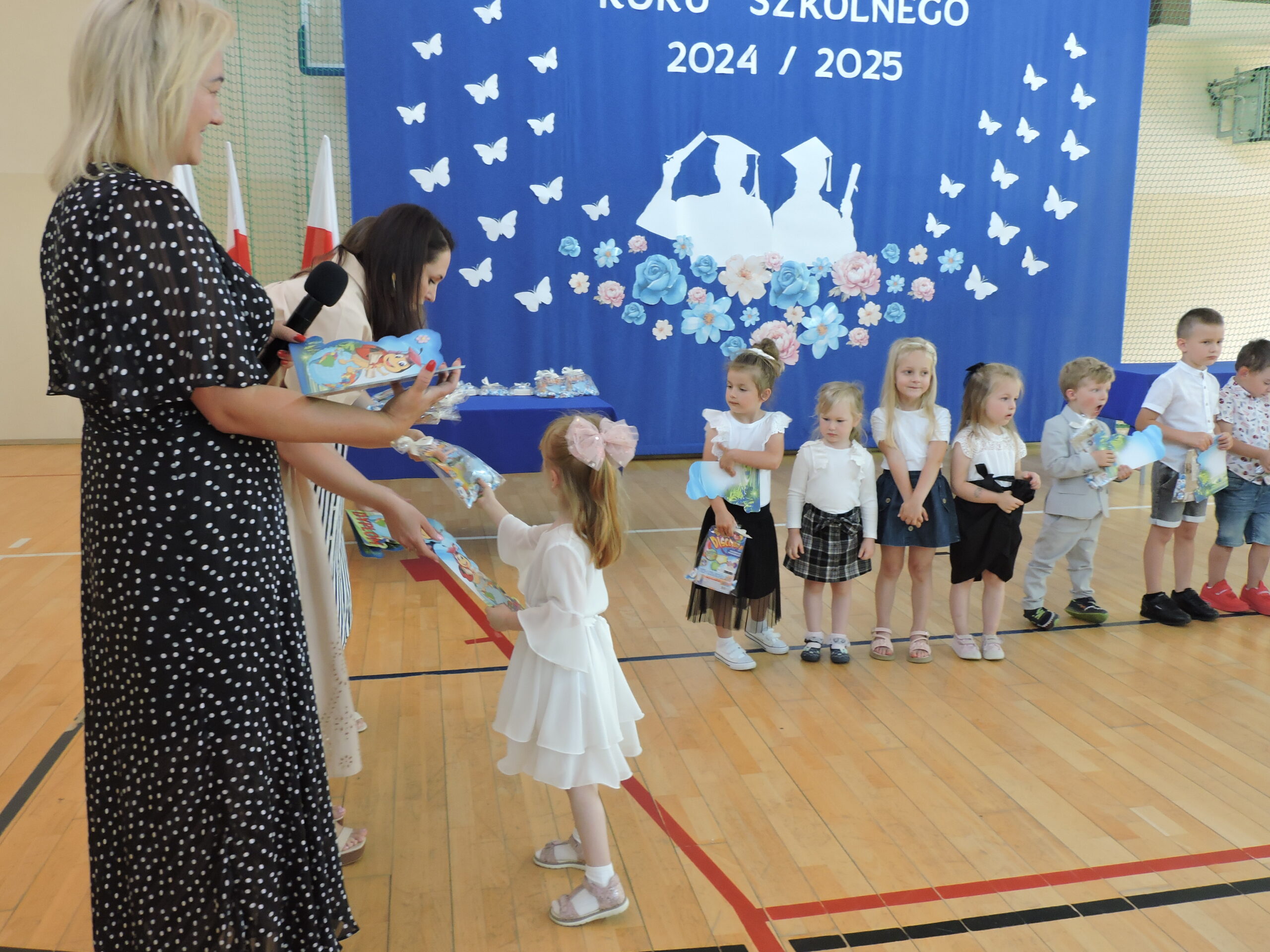 Kulminacyjnym momentem wydarzenia było wręczenie dyplomów przez Panią Dyrektor, która w ciepłych słowach podsumowała mijający rok oraz pogratulowała dzieciom zdobytych umiejętności i sukcesów. Dzieci opuszczające przedszkole otrzymały również pamiątkowe dyplomy i drobne upominki.