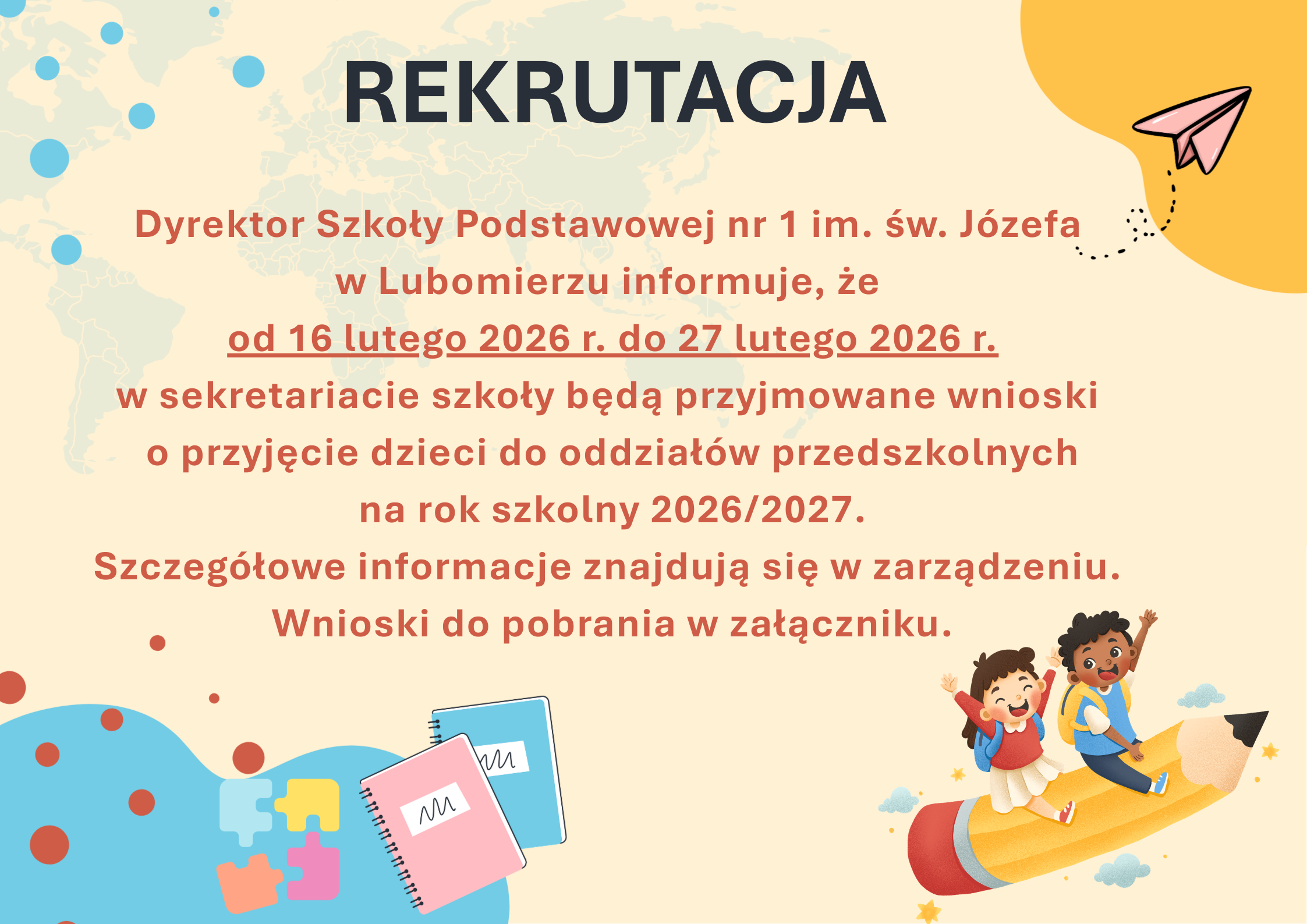 Rekrutacja dzieci i uczniów na rok szkolny 2026/2027