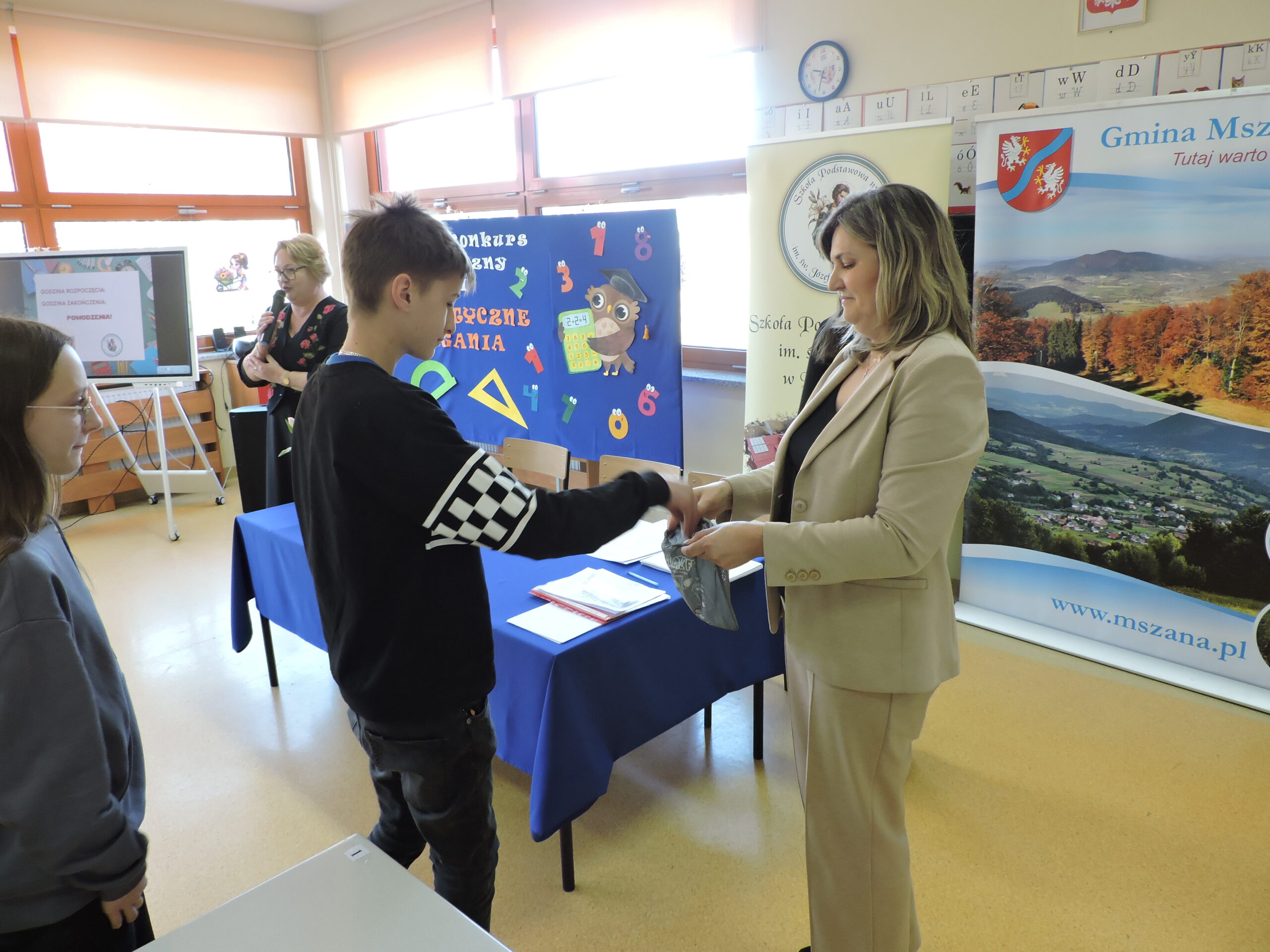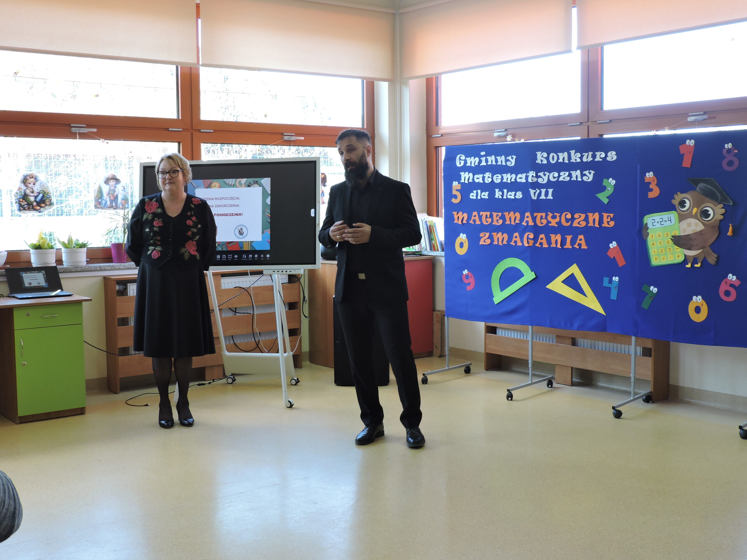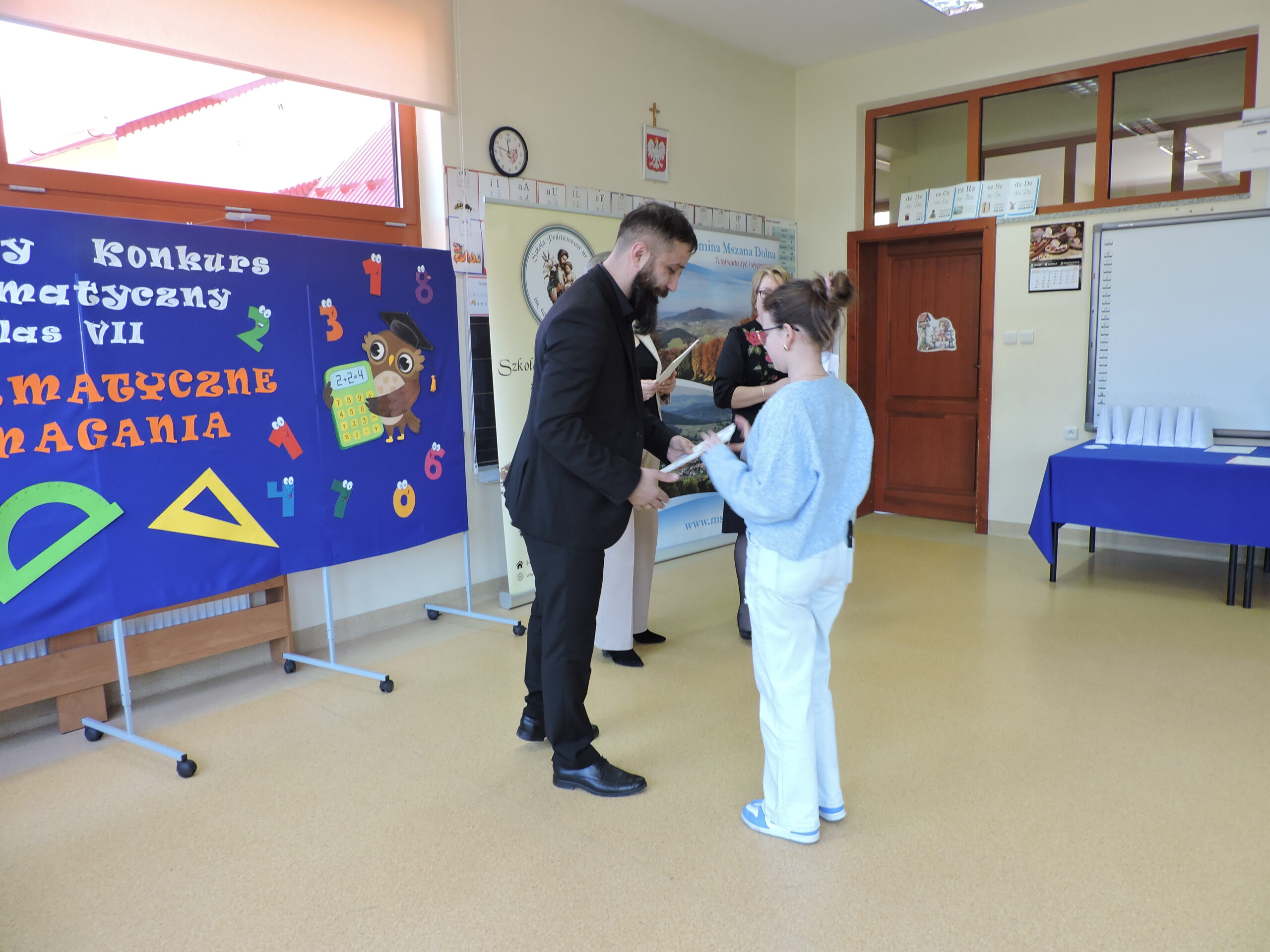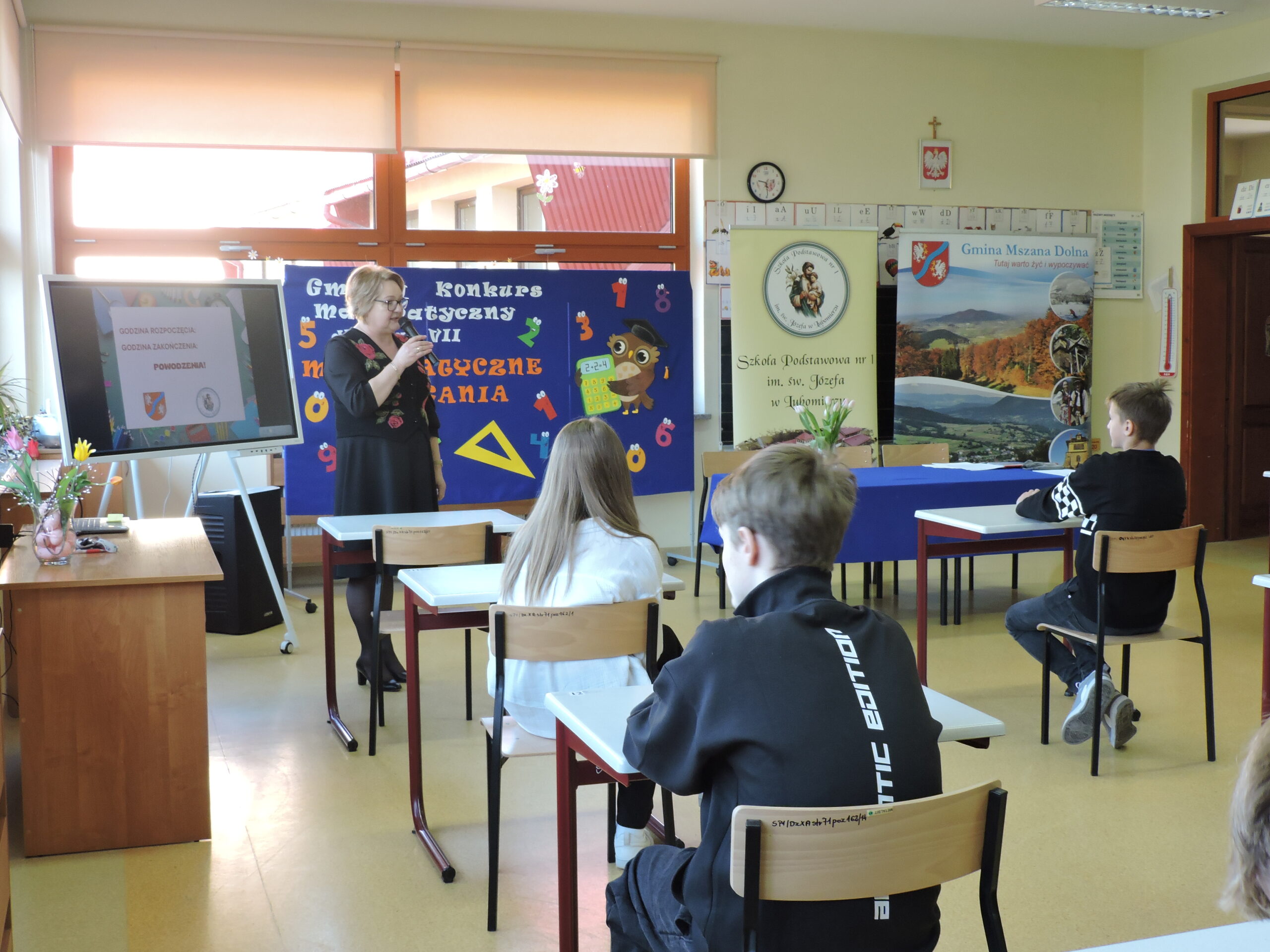 Matematyka jest nazywana „królową nauk”, ponieważ to ona stanowi fundament dla wielu innych dziedzin wiedzy. Jest wpleciona w nasze życie, pomaga nam rozwiązywać problemy i podejmować decyzje na co dzień. Dzięki niej zrozumiemy i opisujemy świat, od prostych codziennych problemów po skomplikowane zjawiska w fizyce, chemii, informatyce czy ekonomii. To fundament, na którym budują się inne nauki.W dniu 3 kwietnia w naszej szkole odbył się Gminny Konkurs Matematyczny „Matematyczne zmagania”. Celem konkursu było kształtowanie kompetencji kluczowych, popularyzowanie zainteresowań matematycznych oraz rozwijanie u uczniów logicznego myślenia, wiary we własne możliwości i umiejętności samodzielnego radzenia sobie w trudnych sytuacjach. Do udziału w tym wydarzeniu zgłosiło się 14 uczniów z klas siódmych ze wszystkich szkół podstawowych z terenu naszej gminy. Honorowy Patronat nad konkursem sprawował Wójt Gminy Mszany Dolnej Pan Mirosław Cichorz. To dowód na to, że lokalne władze są świadome znaczenia nauki matematyki i inicjatyw mających na celu rozwijanie potencjału uczniów. Uczestnicy, będący prawdziwą elitą matematyczną w swoim regionie, rywalizowali ze sobą w rozwiązywaniu zadań aż do trzeciej rozgrywki, podczas której wyłoniono zwycięzców konkursu. Była to prawdziwa matematyczna batalia, pełna emocji i wysiłku intelektualnego.