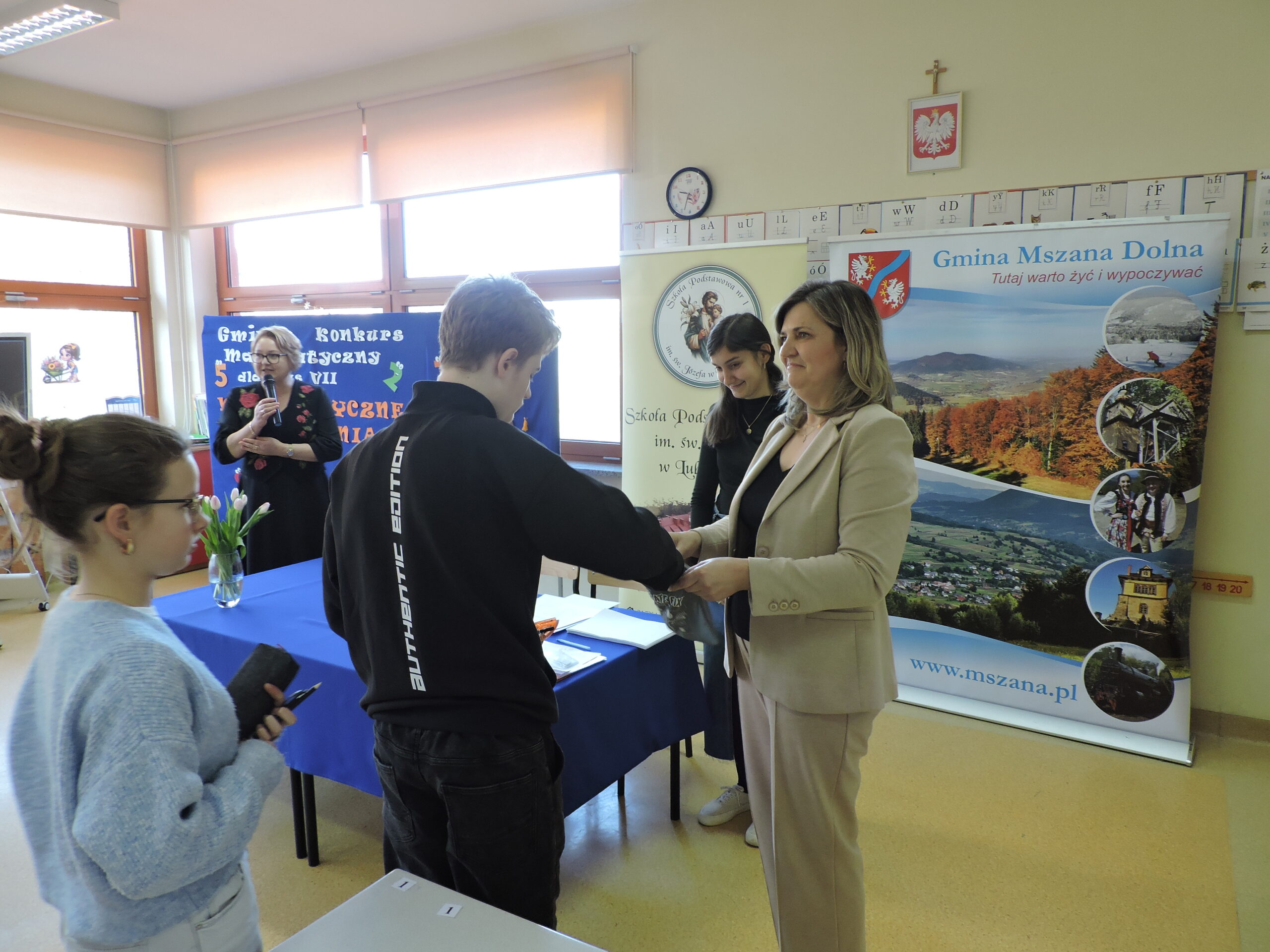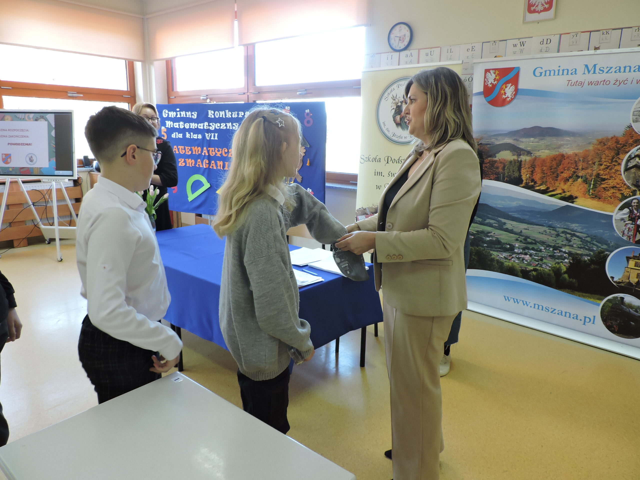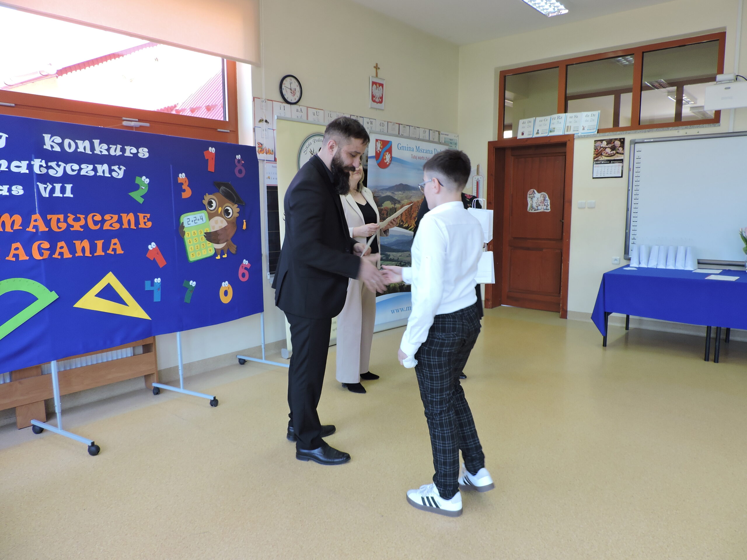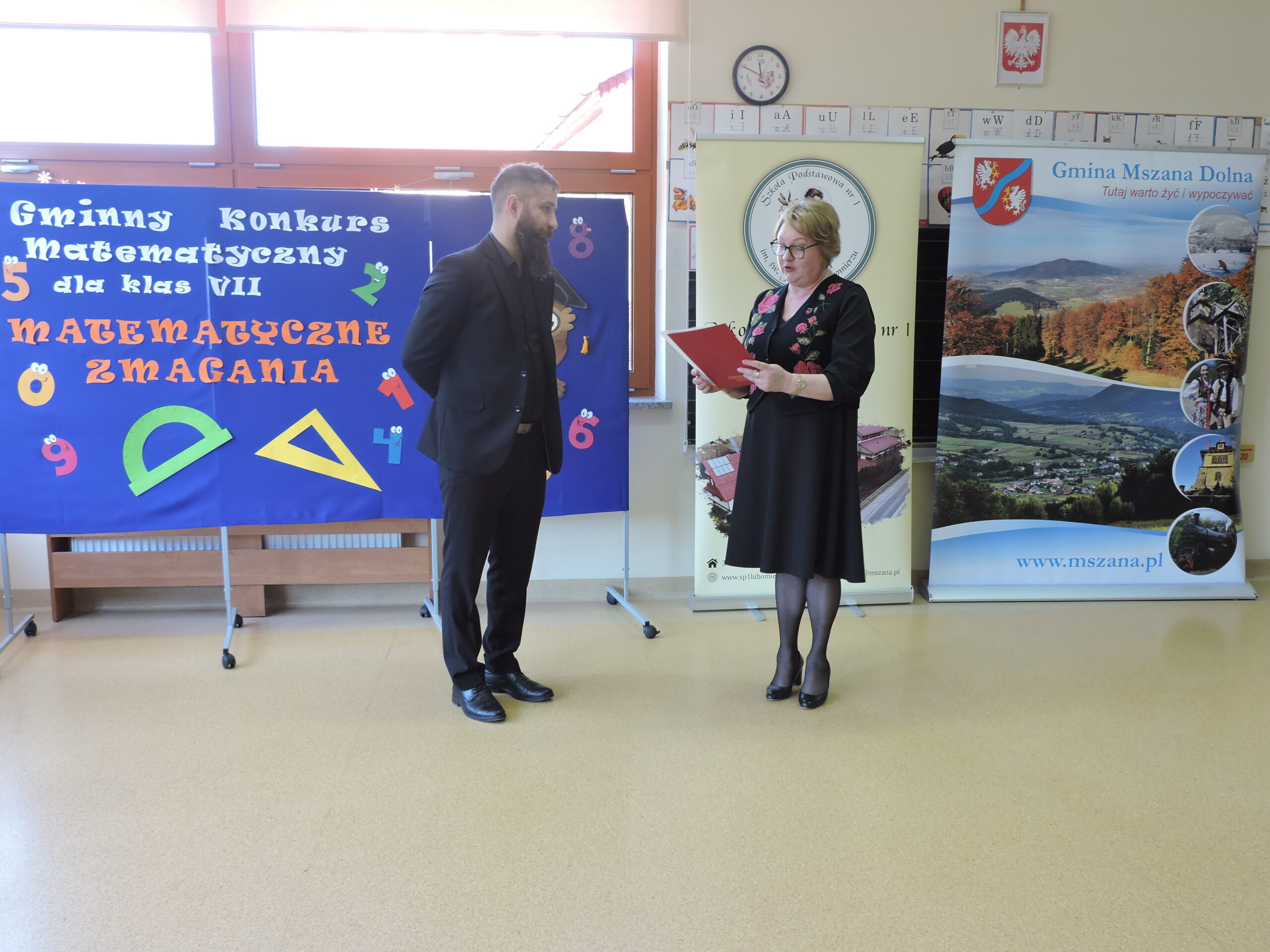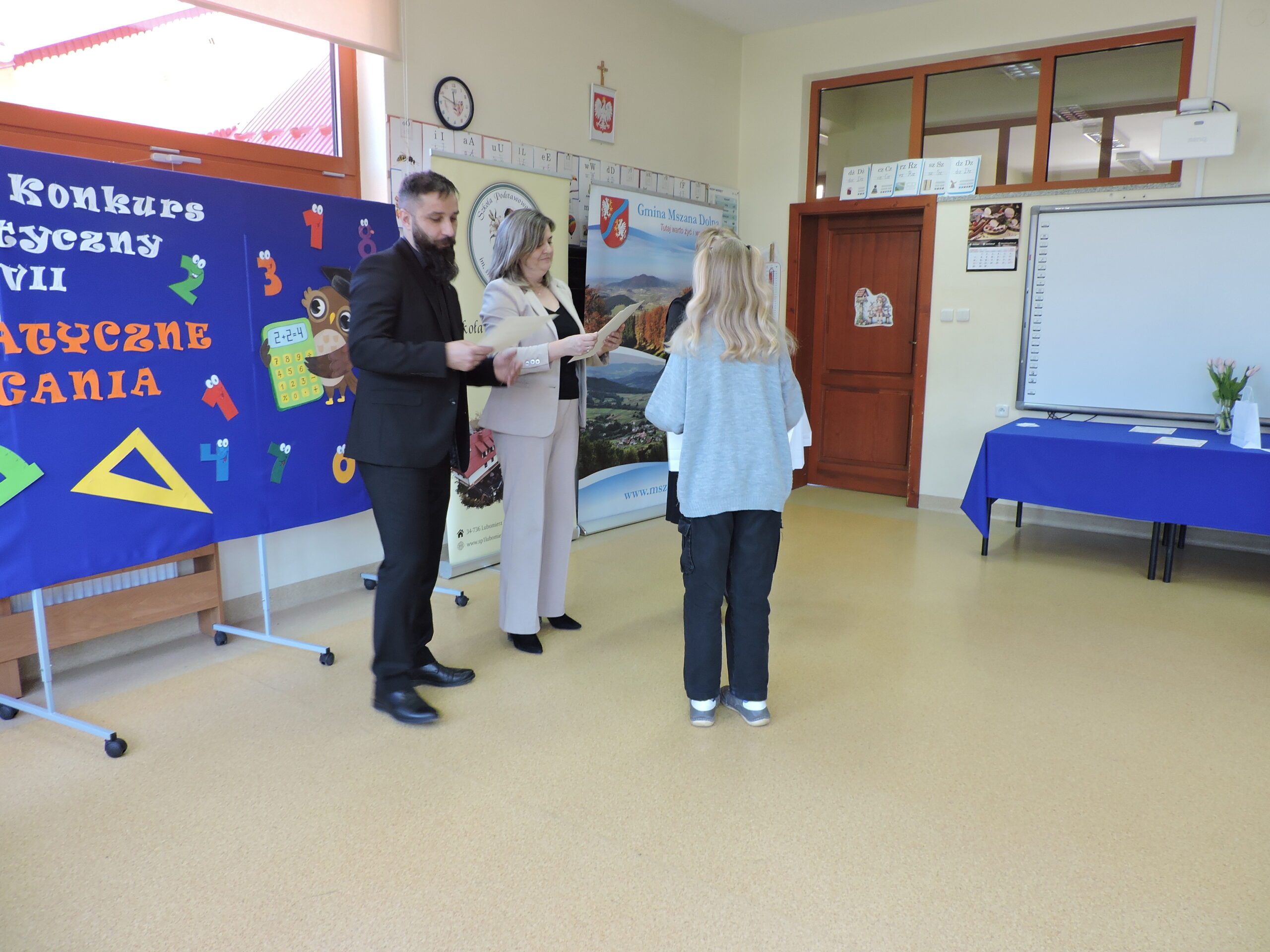 Matematyka jest nazywana „królową nauk”, ponieważ to ona stanowi fundament dla wielu innych dziedzin wiedzy. Jest wpleciona w nasze życie, pomaga nam rozwiązywać problemy i podejmować decyzje na co dzień. Dzięki niej zrozumiemy i opisujemy świat, od prostych codziennych problemów po skomplikowane zjawiska w fizyce, chemii, informatyce czy ekonomii. To fundament, na którym budują się inne nauki.W dniu 3 kwietnia w naszej szkole odbył się Gminny Konkurs Matematyczny „Matematyczne zmagania”. Celem konkursu było kształtowanie kompetencji kluczowych, popularyzowanie zainteresowań matematycznych oraz rozwijanie u uczniów logicznego myślenia, wiary we własne możliwości i umiejętności samodzielnego radzenia sobie w trudnych sytuacjach. Do udziału w tym wydarzeniu zgłosiło się 14 uczniów z klas siódmych ze wszystkich szkół podstawowych z terenu naszej gminy. Honorowy Patronat nad konkursem sprawował Wójt Gminy Mszany Dolnej Pan Mirosław Cichorz. To dowód na to, że lokalne władze są świadome znaczenia nauki matematyki i inicjatyw mających na celu rozwijanie potencjału uczniów. Uczestnicy, będący prawdziwą elitą matematyczną w swoim regionie, rywalizowali ze sobą w rozwiązywaniu zadań aż do trzeciej rozgrywki, podczas której wyłoniono zwycięzców konkursu. Była to prawdziwa matematyczna batalia, pełna emocji i wysiłku intelektualnego.