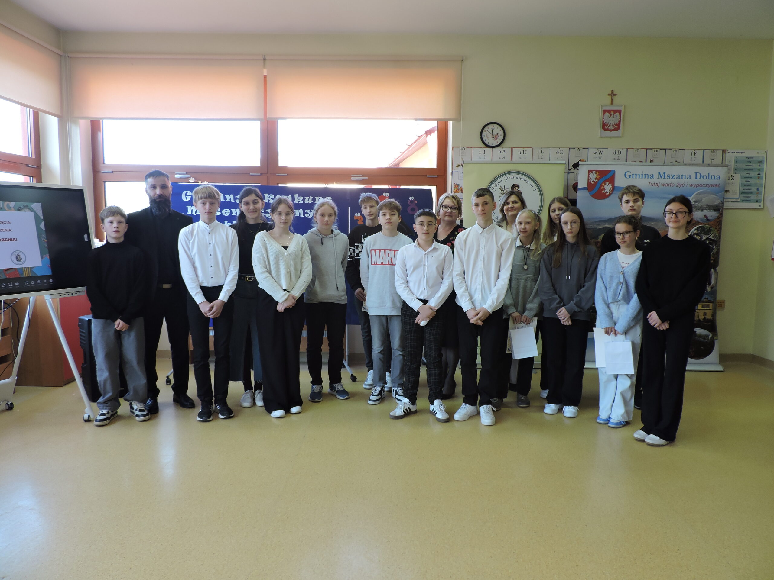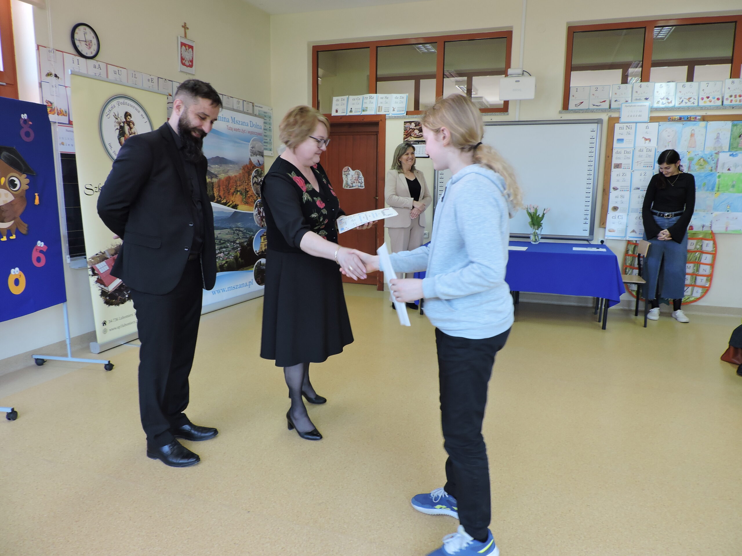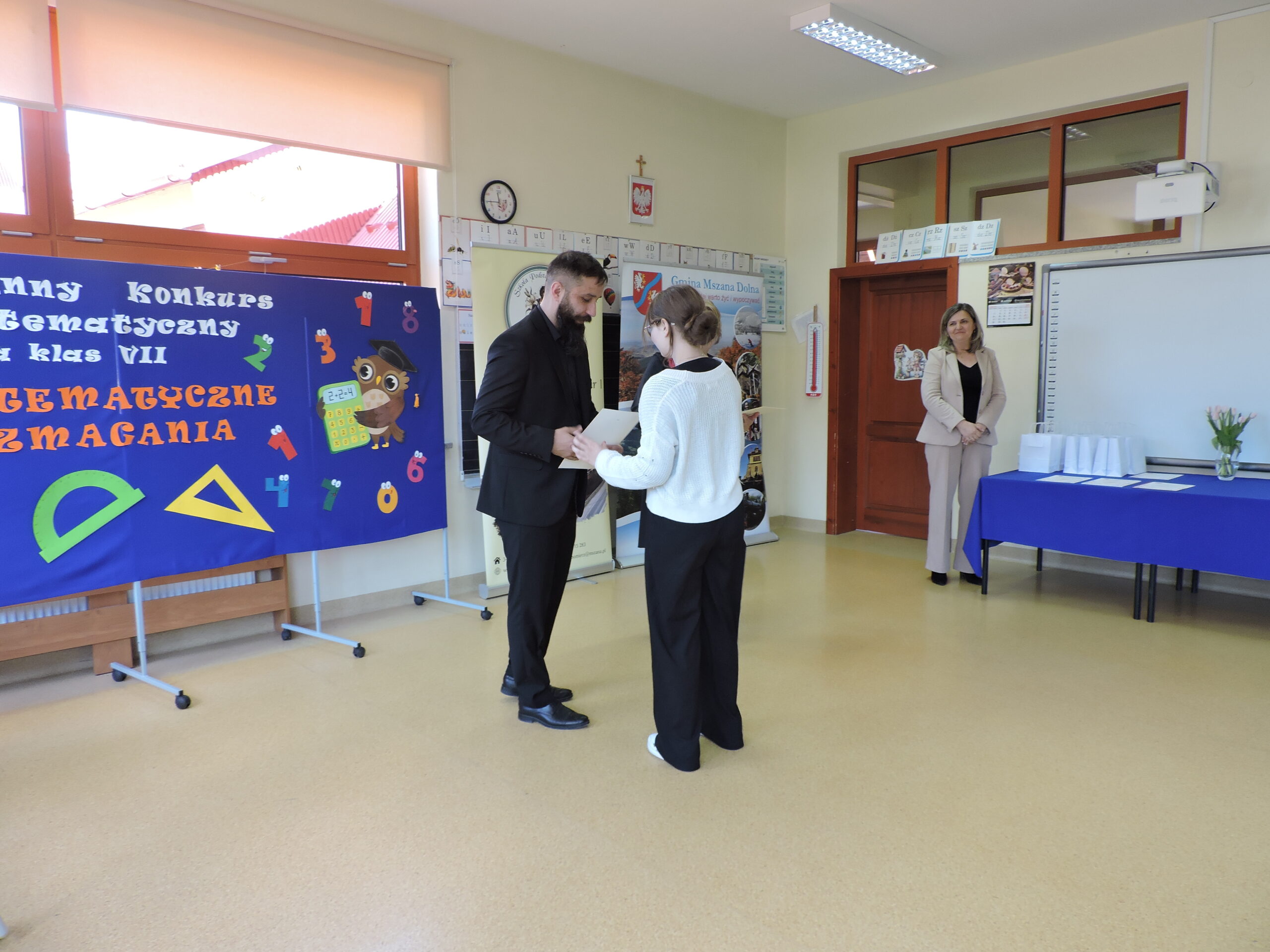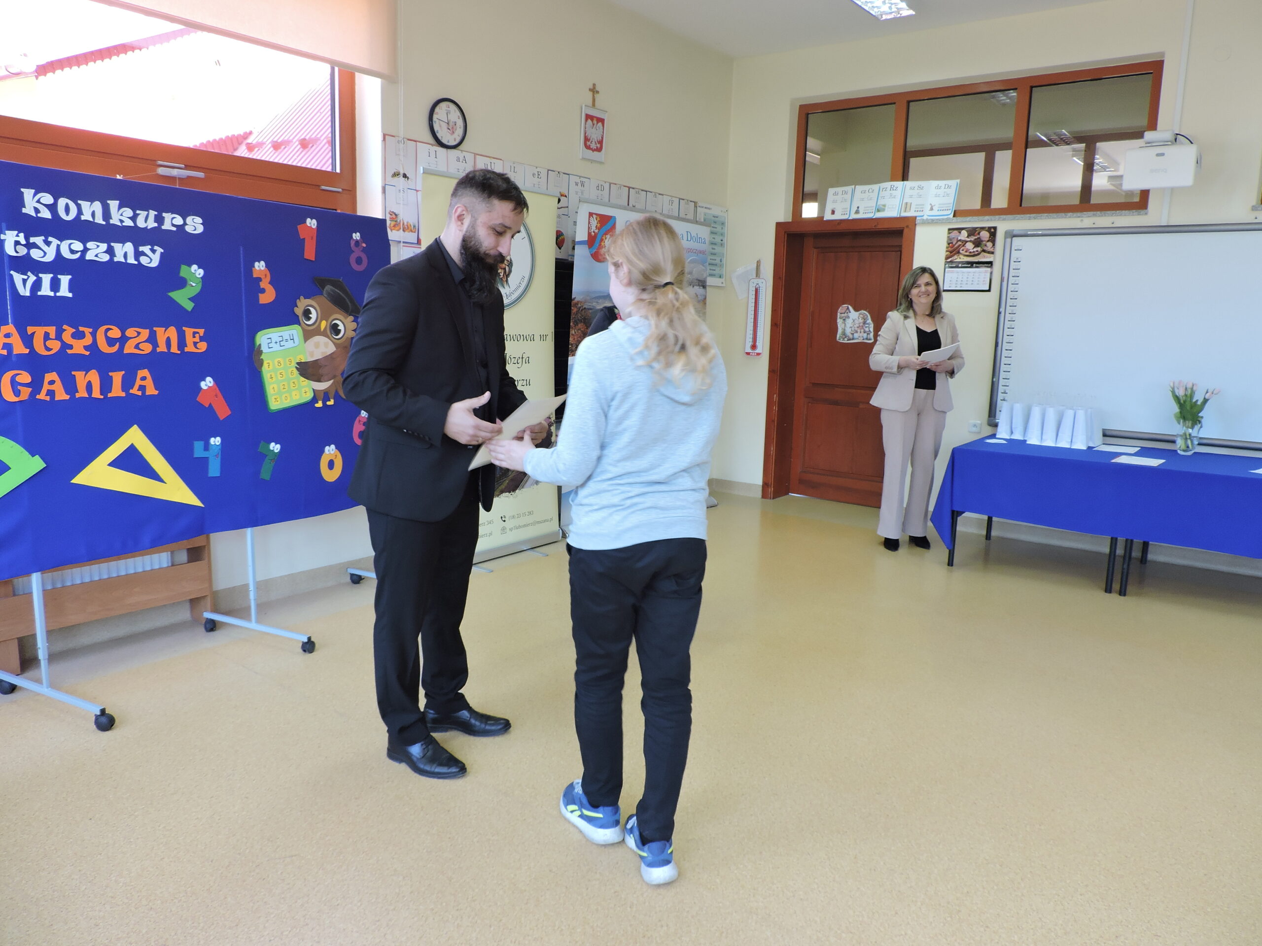 Matematyka jest nazywana „królową nauk”, ponieważ to ona stanowi fundament dla wielu innych dziedzin wiedzy. Jest wpleciona w nasze życie, pomaga nam rozwiązywać problemy i podejmować decyzje na co dzień. Dzięki niej zrozumiemy i opisujemy świat, od prostych codziennych problemów po skomplikowane zjawiska w fizyce, chemii, informatyce czy ekonomii. To fundament, na którym budują się inne nauki.W dniu 3 kwietnia w naszej szkole odbył się Gminny Konkurs Matematyczny „Matematyczne zmagania”. Celem konkursu było kształtowanie kompetencji kluczowych, popularyzowanie zainteresowań matematycznych oraz rozwijanie u uczniów logicznego myślenia, wiary we własne możliwości i umiejętności samodzielnego radzenia sobie w trudnych sytuacjach. Do udziału w tym wydarzeniu zgłosiło się 14 uczniów z klas siódmych ze wszystkich szkół podstawowych z terenu naszej gminy. Honorowy Patronat nad konkursem sprawował Wójt Gminy Mszany Dolnej Pan Mirosław Cichorz. To dowód na to, że lokalne władze są świadome znaczenia nauki matematyki i inicjatyw mających na celu rozwijanie potencjału uczniów. Uczestnicy, będący prawdziwą elitą matematyczną w swoim regionie, rywalizowali ze sobą w rozwiązywaniu zadań aż do trzeciej rozgrywki, podczas której wyłoniono zwycięzców konkursu. Była to prawdziwa matematyczna batalia, pełna emocji i wysiłku intelektualnego.