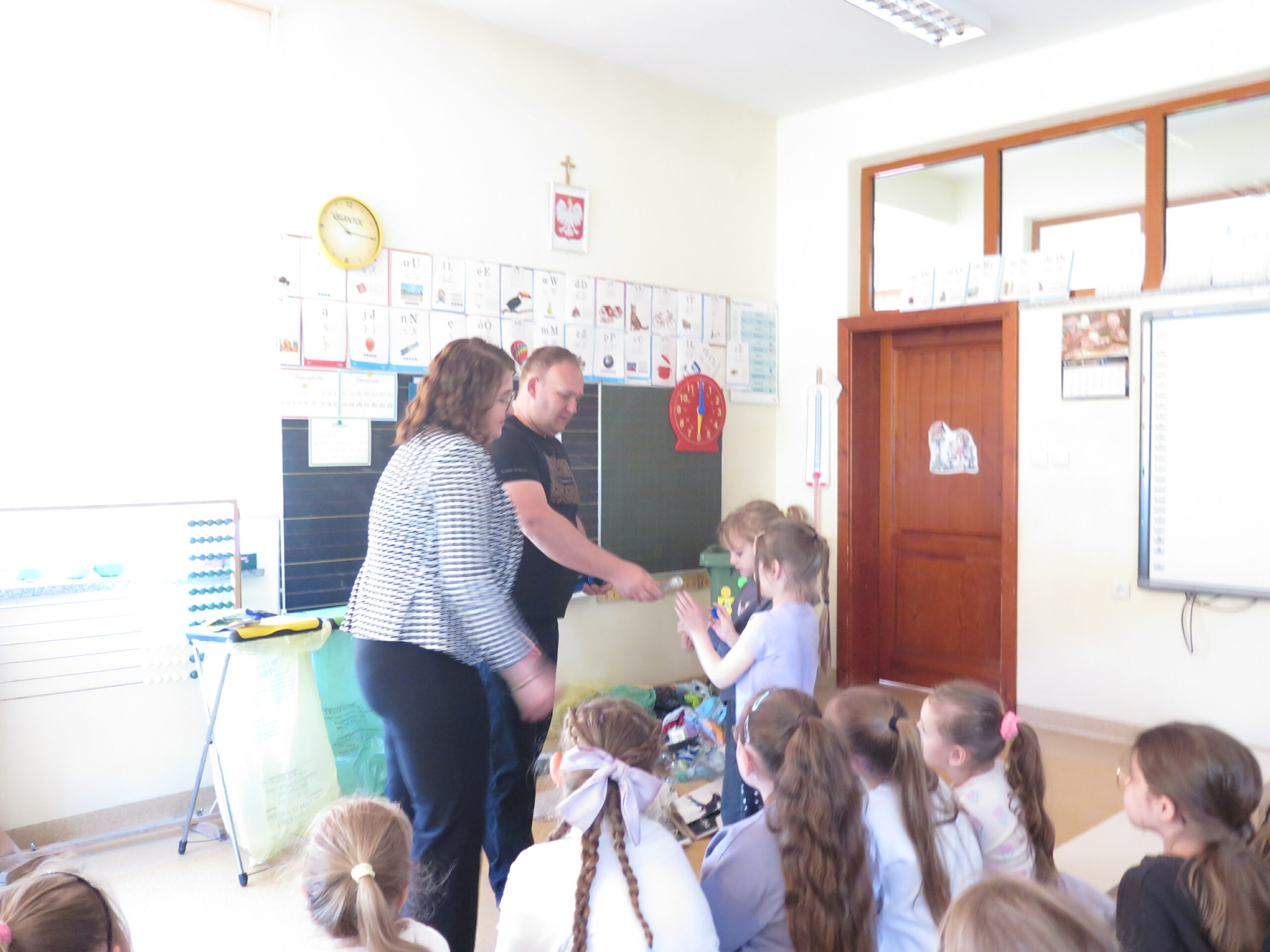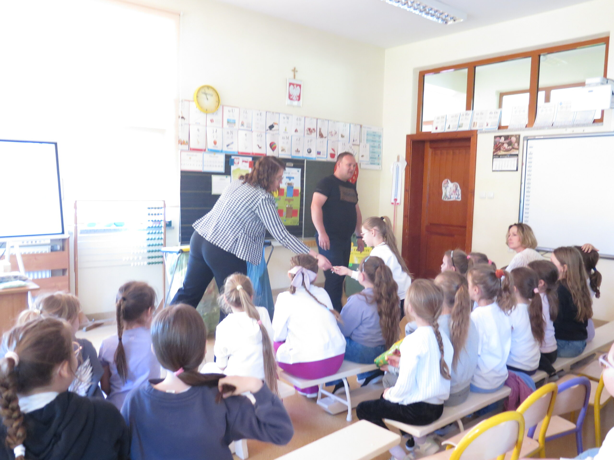 Uczniowie mieli również okazję poznać fascynujący świat recyklingu: stare gazety mogą zamienić się w nowy papier, szklane butelki można przerabiać bez końca, a plastikowe odpady – w nowe przedmioty codziennego użytku. Szczególną uwagę poświęcono też odpadom niebezpiecznym, takim jak baterie czy elektrośmieci – dzieci dowiedziały się, że takie śmieci muszą trafić w specjalne miejsca, by nie zanieczyszczały środowiska.