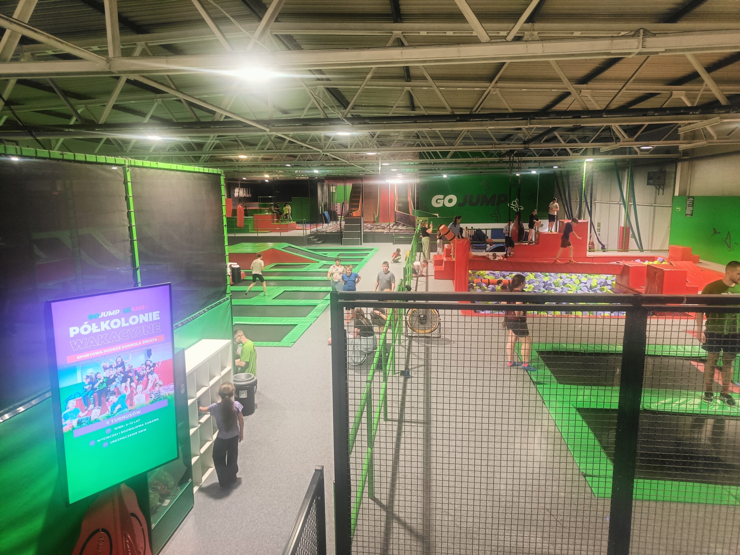 Po tak słodkim początku dnia nadszedł czas na spalenie kalorii – udaliśmy się do parku trampolin Gojump. To miejsce pełne kolorowych trampolin, basenów z gąbkami, torów przeszkód i ścianek wspinaczkowych. Pod czujnym okiem instruktorów mogliśmy skakać, robić salta i próbować różnych akrobacji. Śmiechu było co niemiara, a energii nikt nie szczędził.