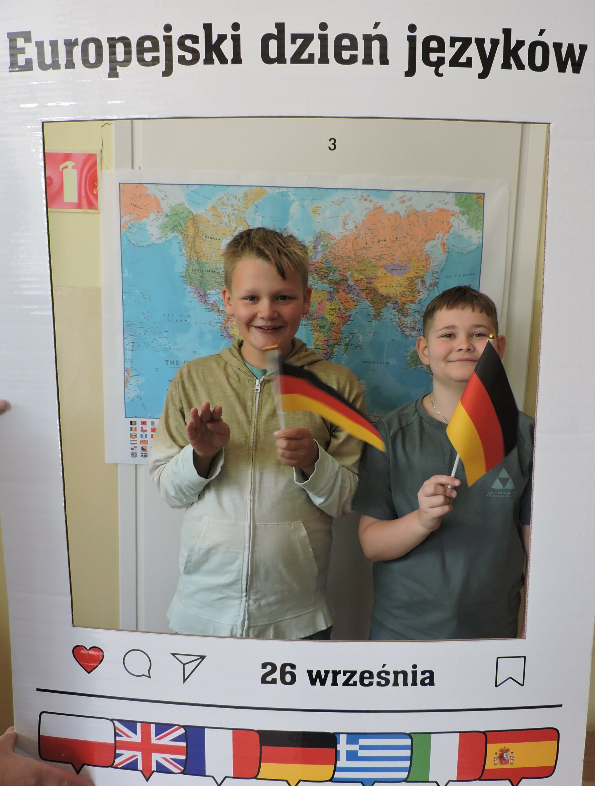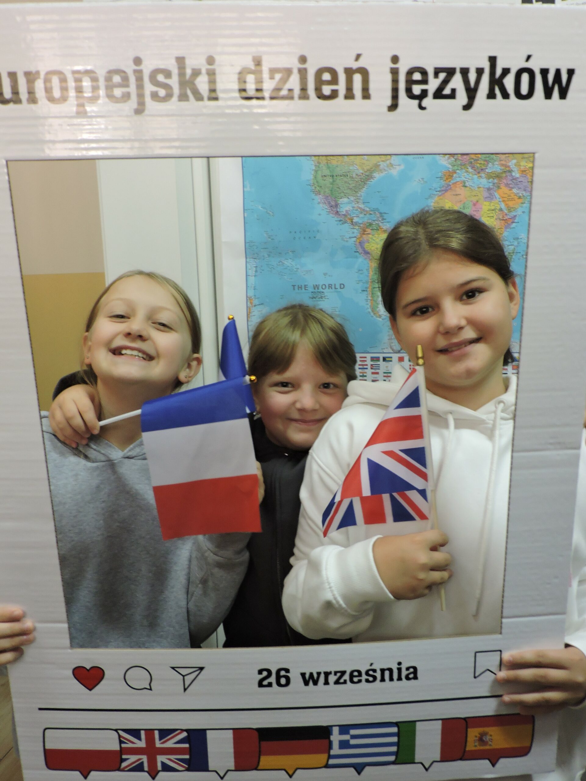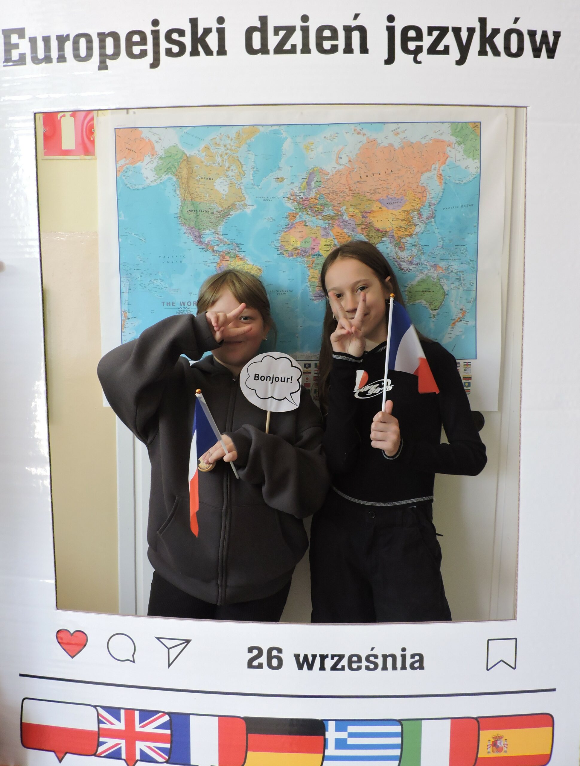 Nie zabrakło także atrakcji w postaci fotobudki z mapą świata w tle. Uczniowie chętnie robili sobie zdjęcia z gadżetami i tabliczkami z napisami w różnych językach, takimi jak „Bonjour!”, „Hello!” czy „Hola!”. Dużym zainteresowaniem cieszył się również quiz „Zgadnij, jaki to język”, w którym uczestnicy słuchali krótkich nagrań i próbowali odgadnąć, skąd pochodzi dany język. Najlepszym wręczono drobne upominki.