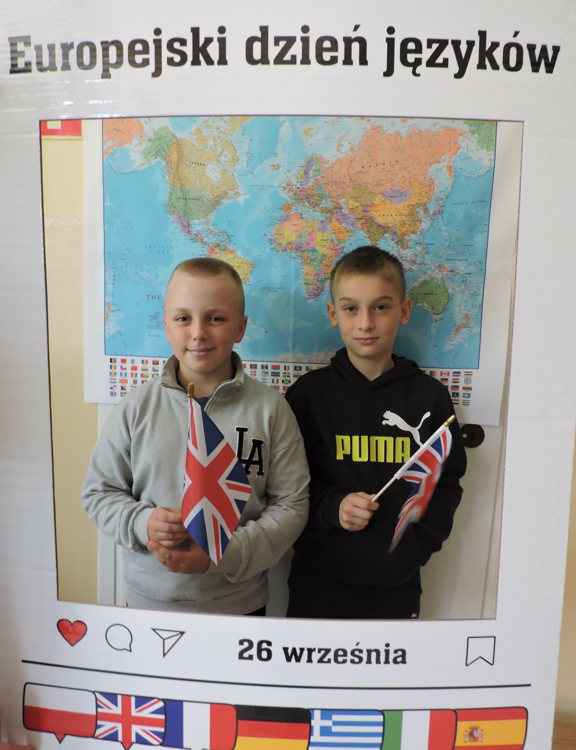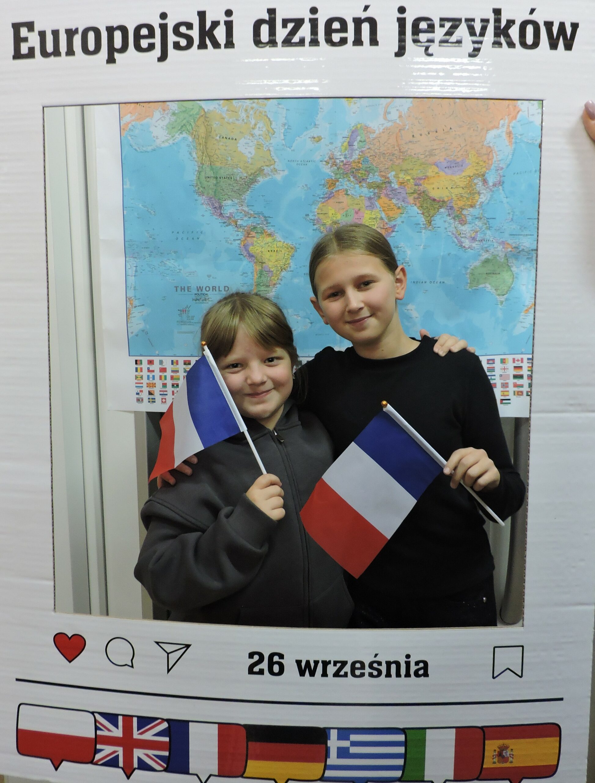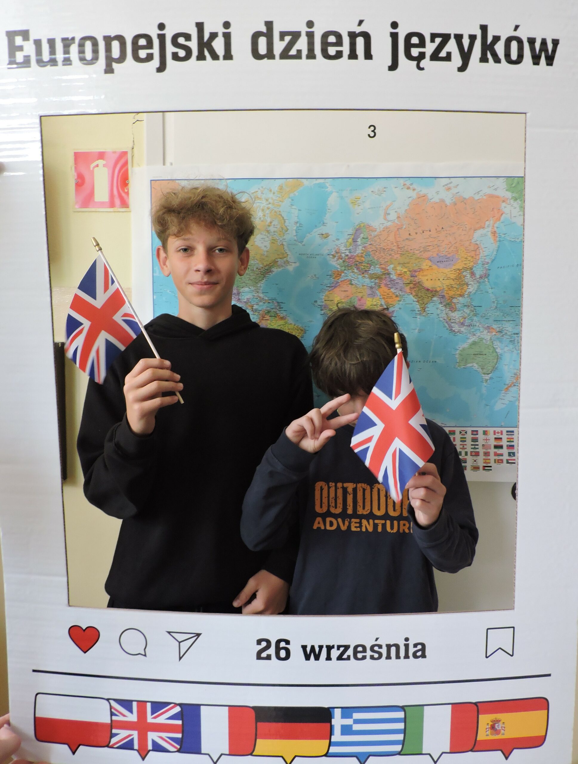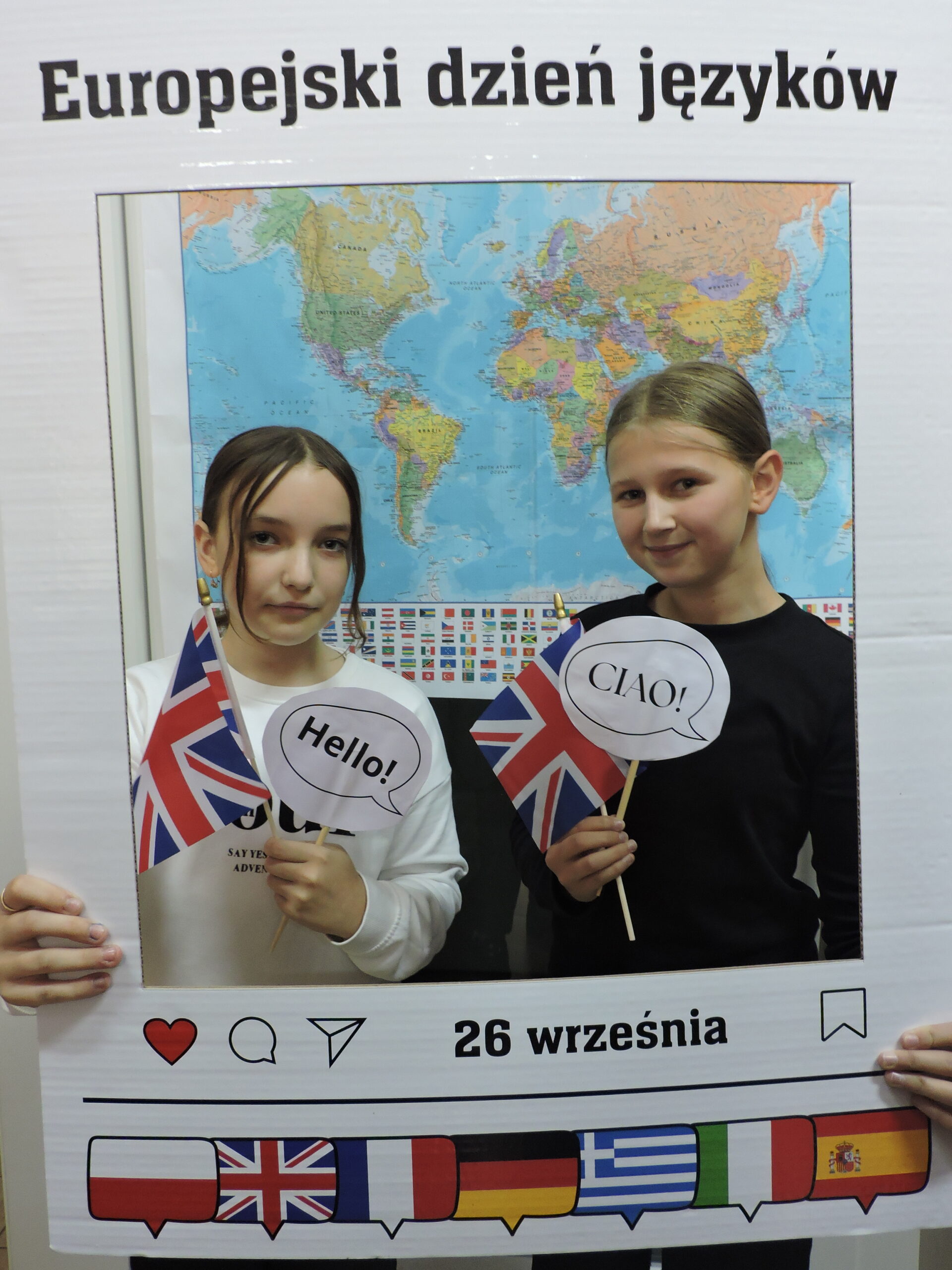 Nie zabrakło także atrakcji w postaci fotobudki z mapą świata w tle. Uczniowie chętnie robili sobie zdjęcia z gadżetami i tabliczkami z napisami w różnych językach, takimi jak „Bonjour!”, „Hello!” czy „Hola!”. Dużym zainteresowaniem cieszył się również quiz „Zgadnij, jaki to język”, w którym uczestnicy słuchali krótkich nagrań i próbowali odgadnąć, skąd pochodzi dany język. Najlepszym wręczono drobne upominki.