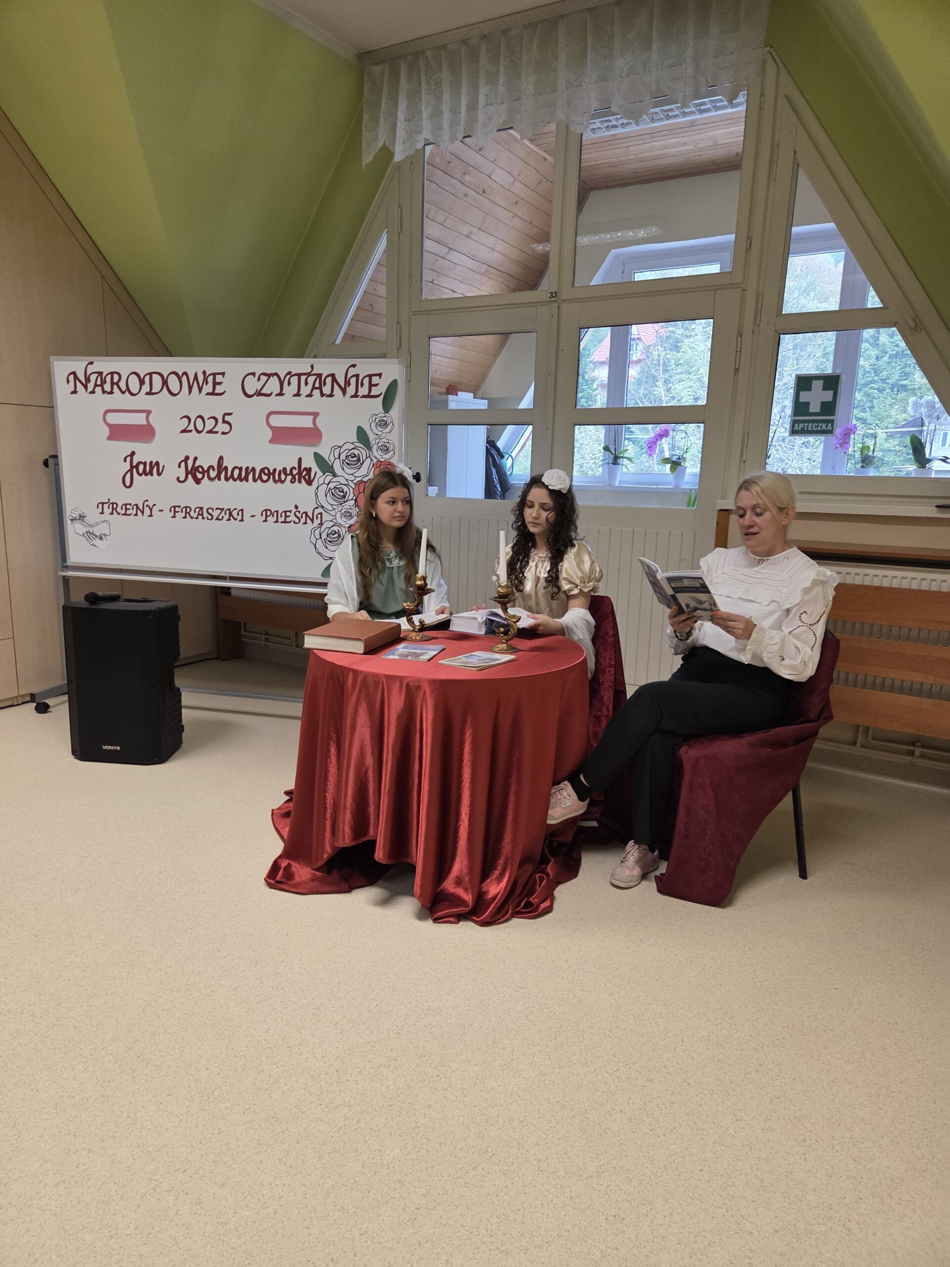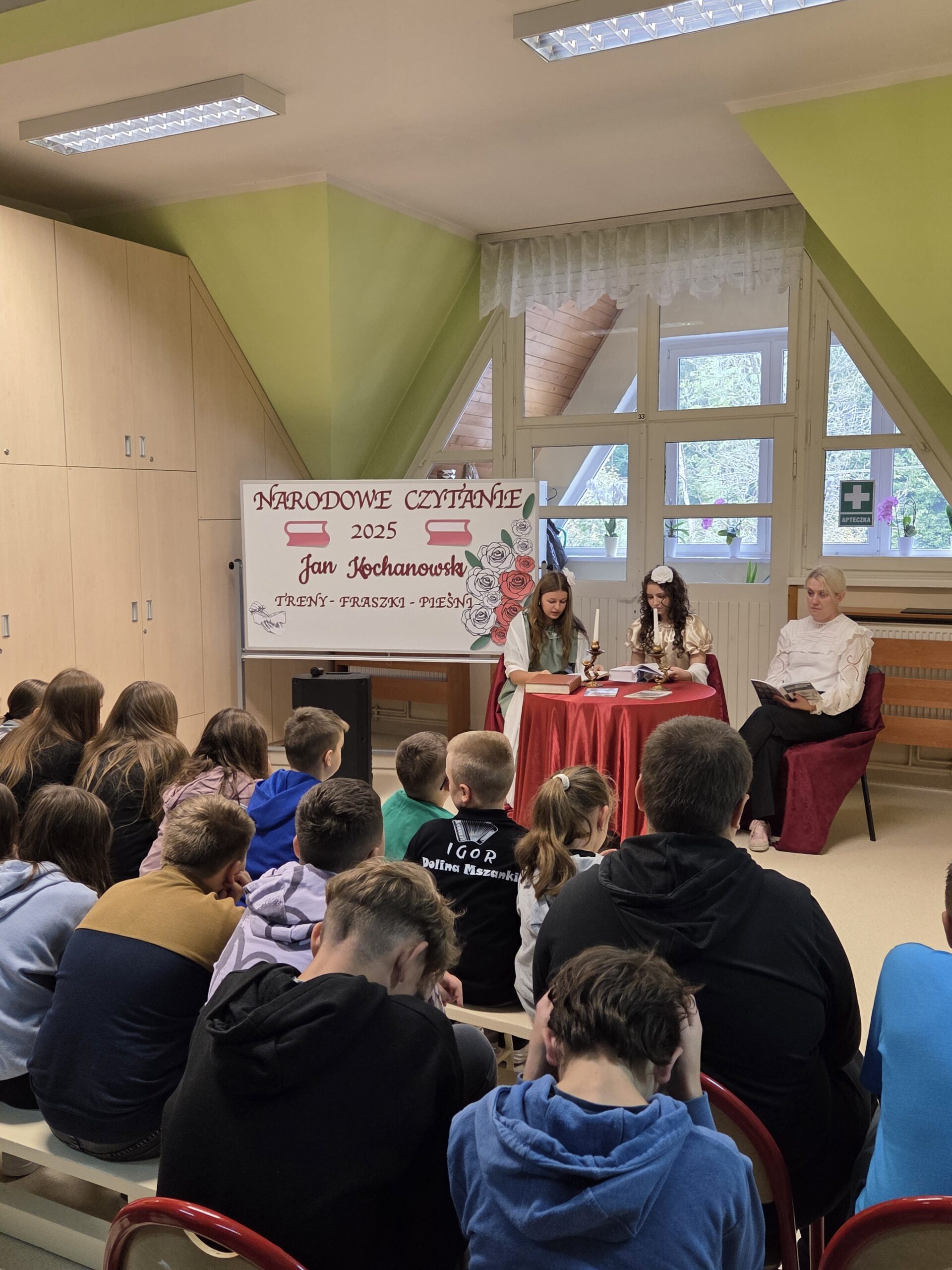W tym roku nasza szkoła włączyła się w ogólnopolską akcję Narodowego Czytania, podczas której w całej Polsce rozbrzmiewają słowa Jana Kochanowskiego – mistrza renesansowego słowa, poety, który potrafił zamknąć w wersach zarówno radość życia, jak i cień przemijania. W szkolnych murach unosił się duch Czarnolasu. Uczniowie i nauczyciele wspólnie czytali fraszki, pieśni i treny, odkrywając na nowo, że słowa sprzed wieków wciąż brzmią świeżo, mądrze i prawdziwie.