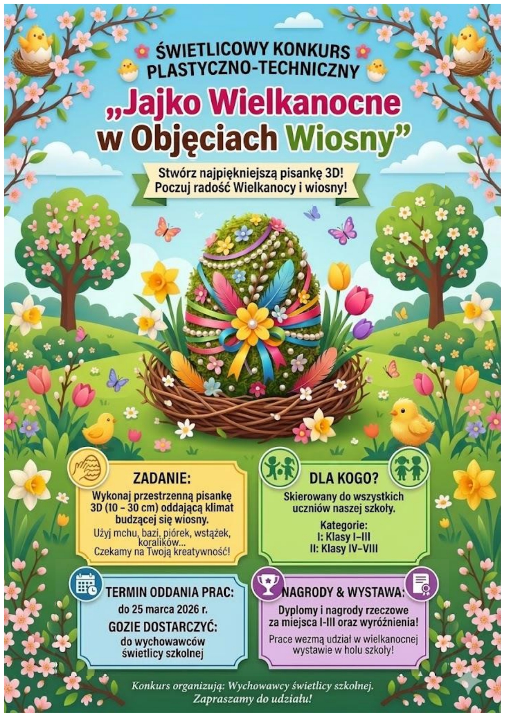 marzec 6 Konkurs „Jajko Wielkanocne w Objęciach Wiosny” REGULAMIN KONKURSU-JAJKO WIELKANOCNE W OBJĘCIACH WIOSNY Copyright © 2014. All rights reserved. Posted 6 marca 2026 by Anna in category Uncategorized Post navigation Rozwijamy cyfrową edukację – nasza szkoła w projekcie wojewódzkim! Komunikat Dyrektora Szkoły w sprawie wyników rekrutacji