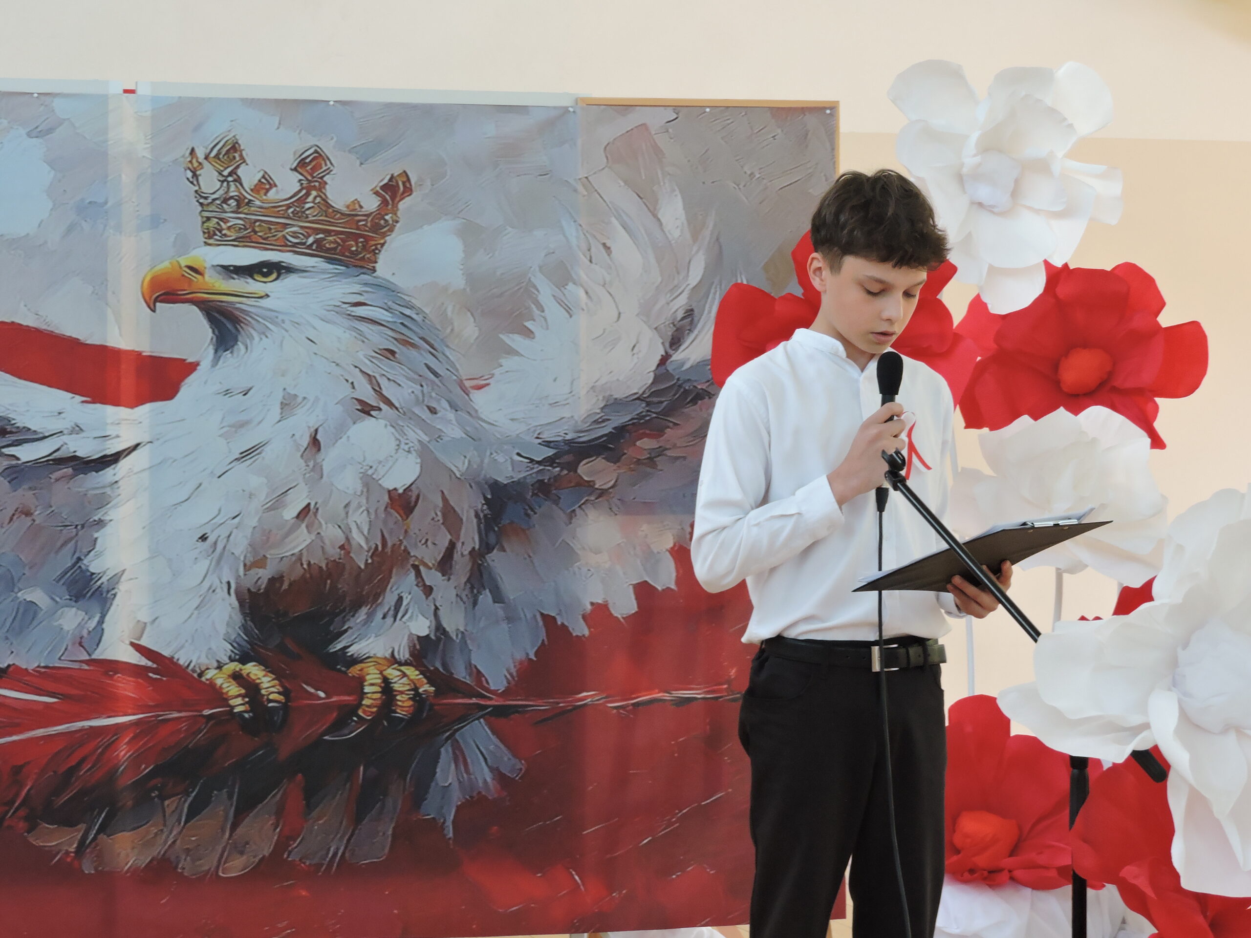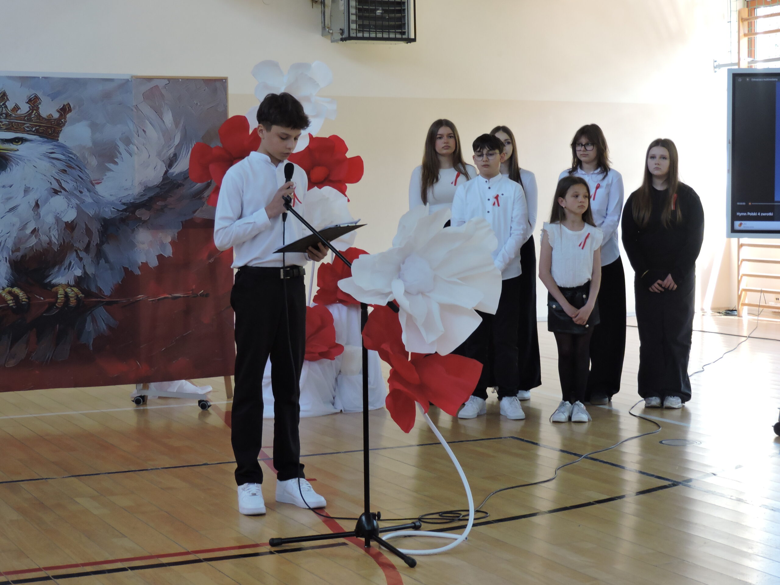 30 kwietnia w naszej szkole odbyła się uroczysta akademia z okazji rocznicy uchwalenia Konstytucji 3 Maja. W wydarzeniu wzięli udział uczniowie, nauczyciele oraz rodzice. Uroczystość rozpoczęła się od odśpiewania hymnu państwowego, co nadało jej podniosły charakter. Następnie uczniowie przedstawili część artystyczną, która przybliżyła znaczenie tego ważnego wydarzenia w historii Polski. W programie znalazły się recytacje wierszy o tematyce patriotycznej, scenki historyczne oraz występy muzyczne.